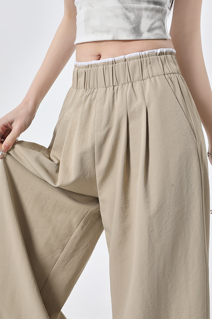 Crafted from high-quality nylon-blend Tencel fabric, these wide-leg trousers feature a refined lace-trim design with fluid drape and superior comfort. The tailored cut enhances proportions by visually elongating the legs and narrowing the hips, creating a sleek and confident silhouette. Perfect for spring and summer, the airy structure delivers both style and comfort, effortlessly balancing modern elegance with everyday wearability.
