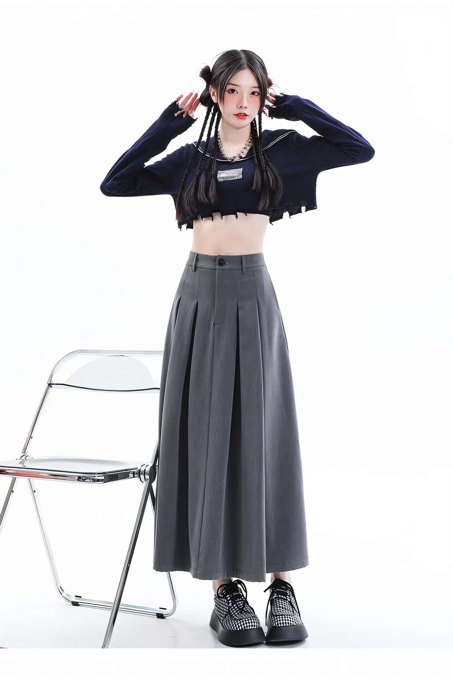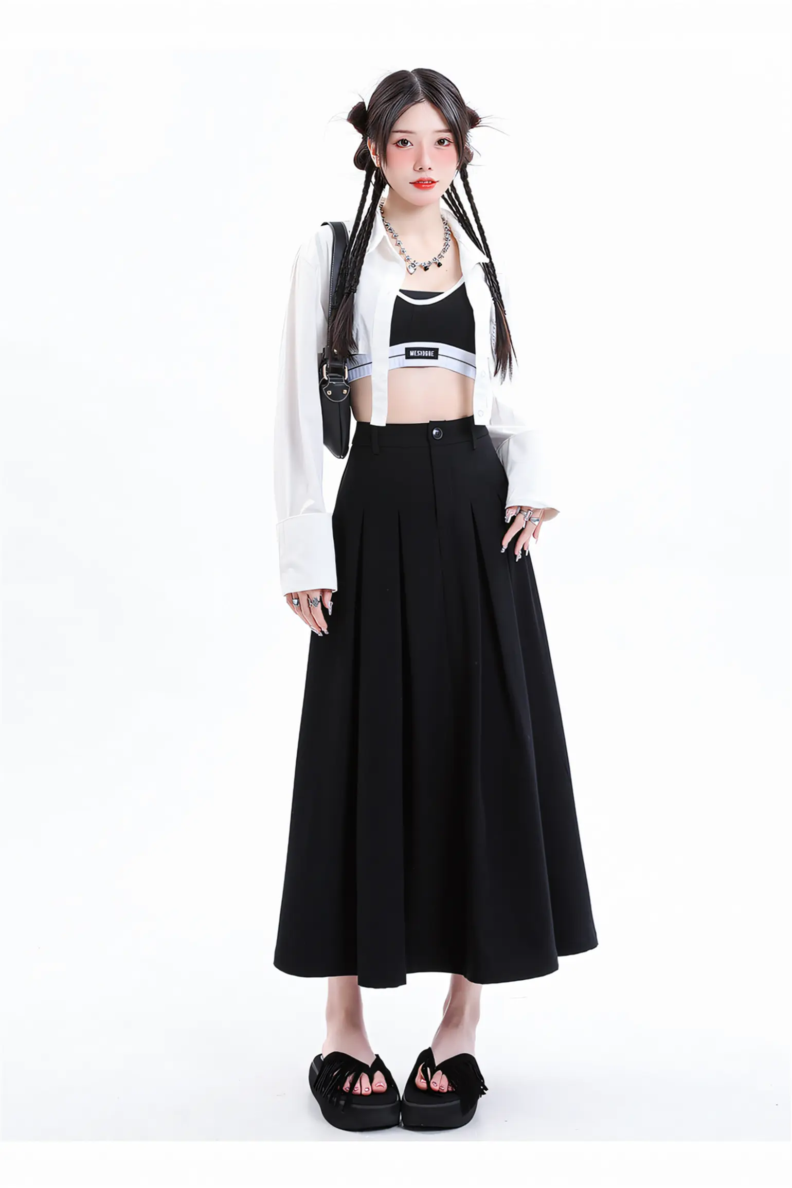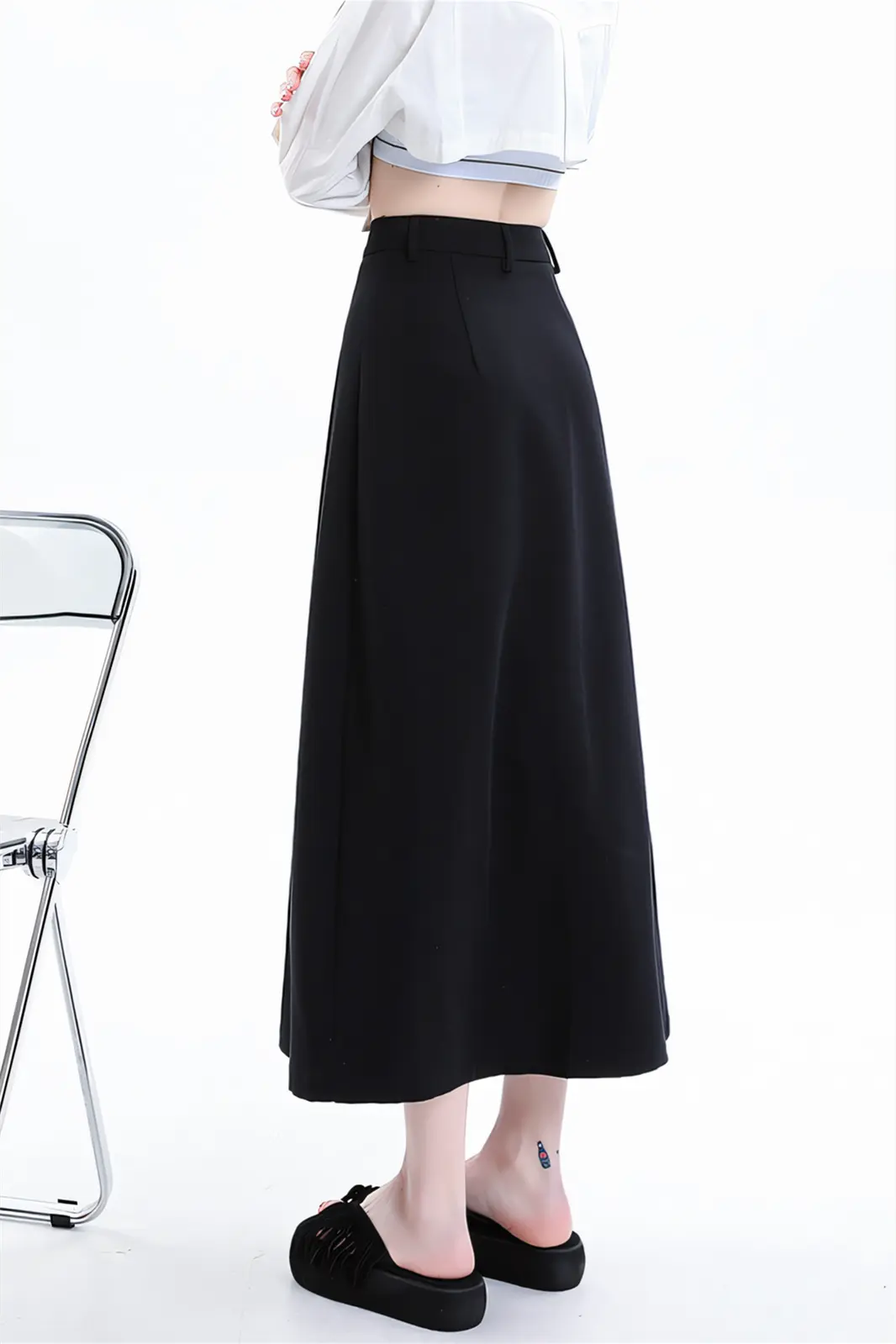 This midi-length pleated skirt combines a tailored suiting look with feminine movement. Designed with a high-rise A-line silhouette, it cinches the waist, flattens the tummy, and gracefully conceals the hips. The flowing pleats add ease of movement—walk, sit, or squat without restriction—while visually elongating the legs for a refined, slimming effect. A perfect blend of comfort and style, ideal for both office wear and casual chic.