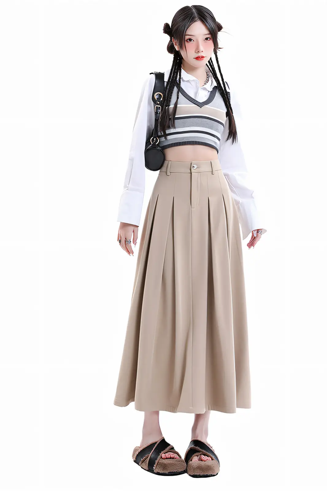 Women’s Midi Pleated Skirt – High-Waist A-Line Skirt 2025 Autumn/Winter