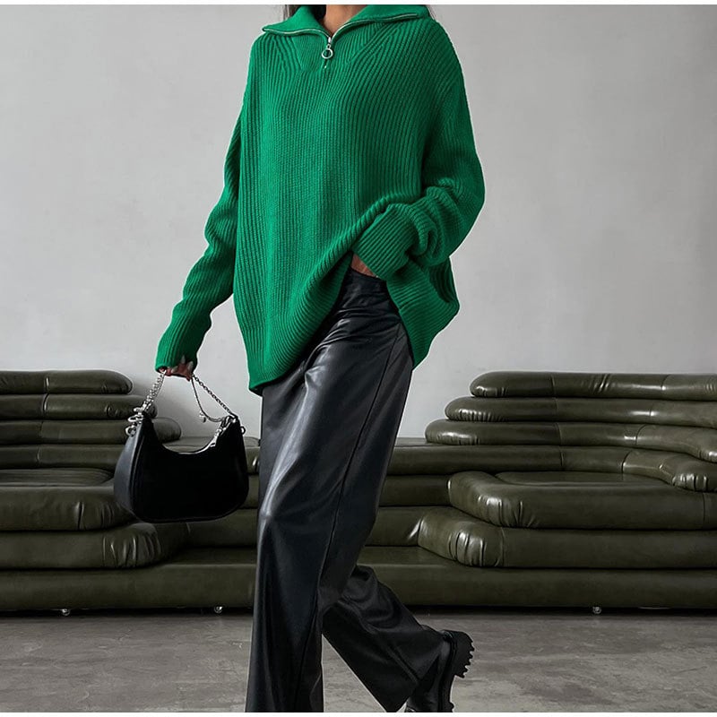 Women's oversized lapel sweatshirt. Women's long sleeve jumper, solid colour, 1/4 zip pullover. Casual loose jumper, cute basic shirt, chic and stylish. Drop shoulder and high neck. Oversized Zuni Neck Sweater is suitable for all body types.
